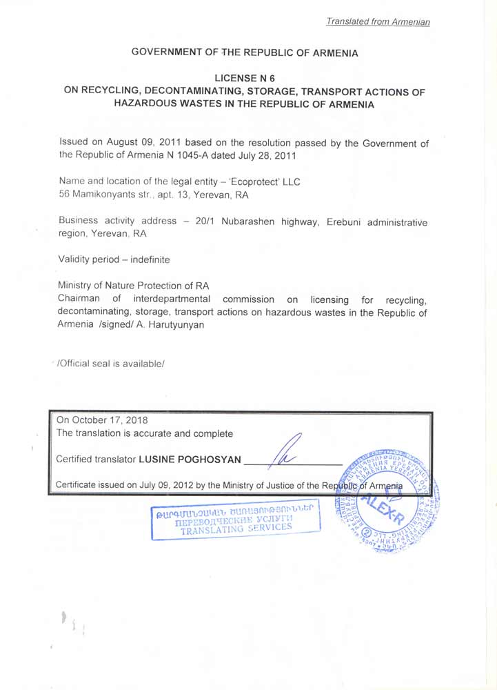 - Email us:info@ecopro.am